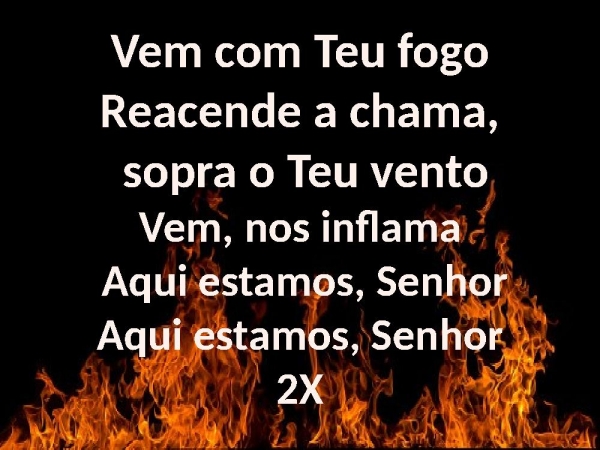 - Vem com Teu fogoReacende a chama, sopra o Teu ventoVem, nos inflama Aqui estamos, SenhorAqui estamos, Senhor2X