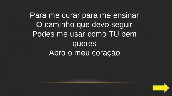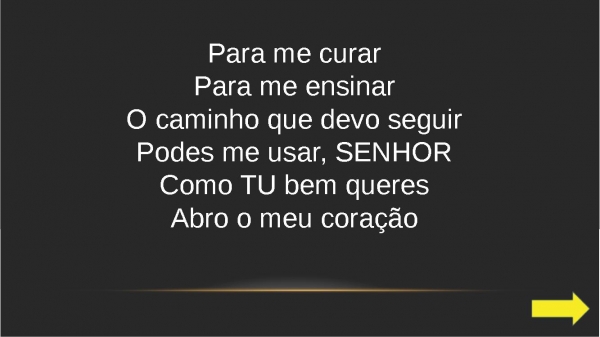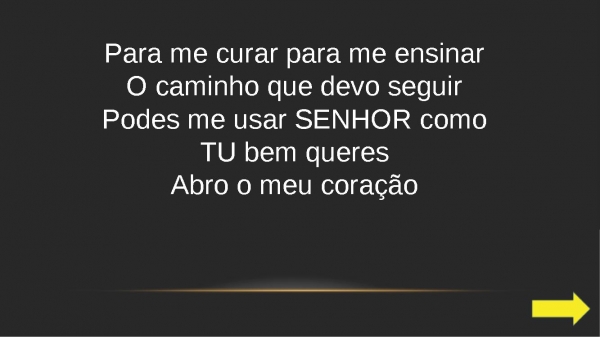 • Para me curarPara me ensinarO caminho que devo seguirPodes me usar, SENHORComo TU bem queresAbro o meu coração