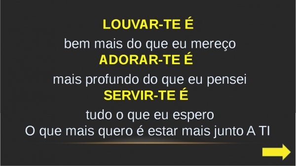 • LOUVAR-TE É bem mais do que eu mereçoADORAR-TE É mais profundo do que eu penseiSERVIR-TE É tudo o que eu esperoO que mais quero é estar mais junto A TI