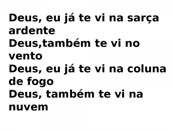 - Deus, eu já te vi na sarça ardenteDeus,também te vi no ventoDeus, eu já te vi na coluna de fogoDeus, também te vi na nuvem