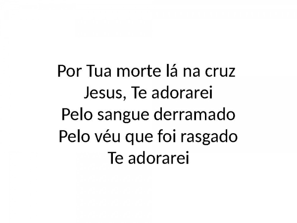- Por Tua morte lá na cruz Jesus, Te adorareiPelo sangue derramadoPelo véu que foi rasgadoTe adorarei