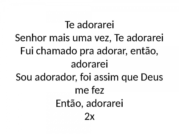 - Te adorareiSenhor mais uma vez, Te adorareiFui chamado pra adorar, então, adorareiSou adorador, foi assim que Deus me fezEntão, adorarei2x