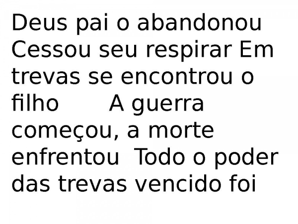 - Deus pai o abandonou Cessou seu respirar Em trevas se encontrou o filho A guerra começou, a morte enfrentou Todo o poder das trevas vencido foi