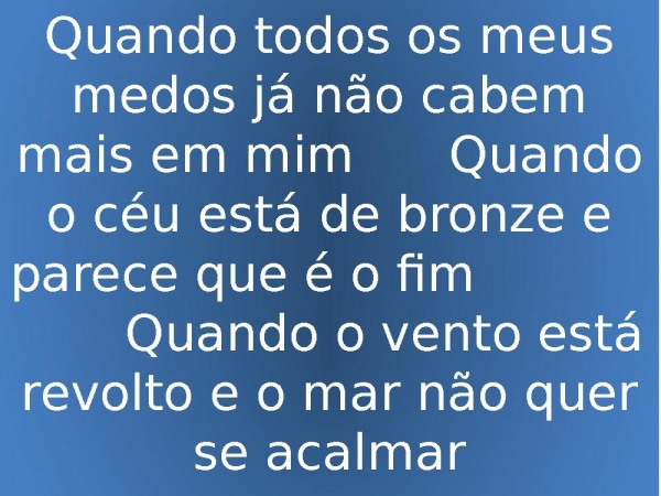 - Quando todos os meus medos já não cabem mais em mim Quando o céu está de bronze e parece que é o fim Quando o vento está revolto e o mar não quer se acalmar