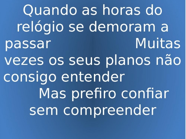 - Quando as horas do relógio se demoram a passar Muitas vezes os seus planos não consigo entender Mas prefiro confiar sem compreender