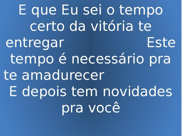 - E que Eu sei o tempo certo da vitória te entregar Este tempo é necessário pra te amadurecer E depois tem novidades pra você