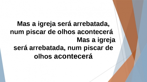 - Mas a igreja será arrebatada, num piscar de olhos acontecerá Mas a igreja será arrebatada, num piscar de olhos acontecerá