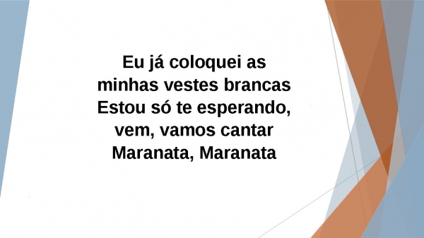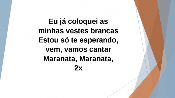 - Eu já coloquei as minhas vestes brancasEstou só te esperando, vem, vamos cantarMaranata, Maranata,2x