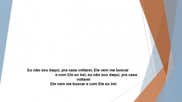 - Eu não sou daqui, pra casa voltarei, Ele vem me buscar e com Ele eu irei, eu não sou daqui, pra casa voltareiEle vem me buscar e com Ele eu irei