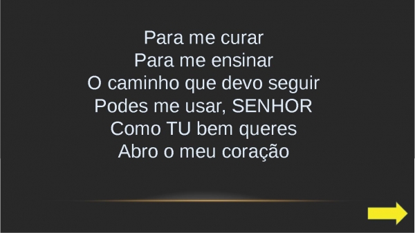 - Para me curarPara me ensinarO caminho que devo seguirPodes me usar, SENHORComo TU bem queresAbro o meu coração