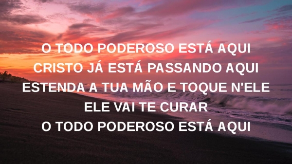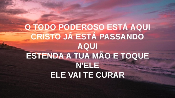 - O TODO PODEROSO ESTÁ AQUICRISTO JÁ ESTÁ PASSANDO AQUIESTENDA A TUA MÃO E TOQUE N'ELEELE VAI TE CURARO TODO PODEROSO ESTÁ AQUI
