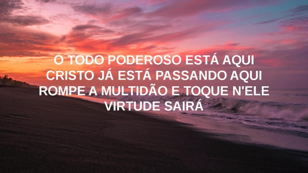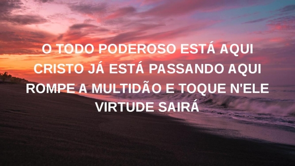 - O TODO PODEROSO ESTÁ AQUICRISTO JÁ ESTÁ PASSANDO AQUIESTENDA A TUA MÃO E TOQUE N'ELEELE VAI TE CURAR