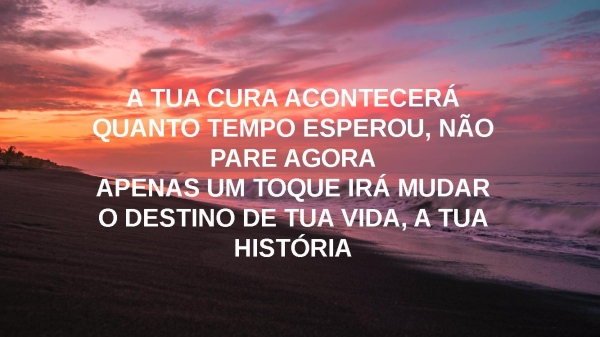 - A TUA CURA ACONTECERÁQUANTO TEMPO ESPEROU, NÃO PARE AGORAAPENAS UM TOQUE IRÁ MUDARO DESTINO DE TUA VIDA, A TUA HISTÓRIA