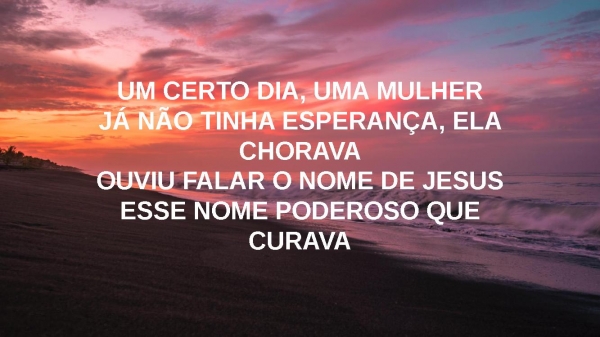 - UM CERTO DIA, UMA MULHERJÁ NÃO TINHA ESPERANÇA, ELA CHORAVAOUVIU FALAR O NOME DE JESUSESSE NOME PODEROSO QUE CURAVA