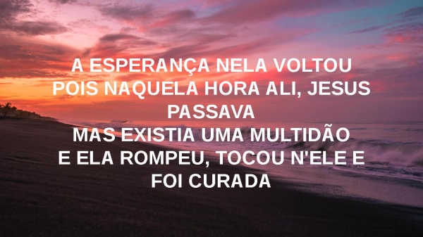 - A ESPERANÇA NELA VOLTOUPOIS NAQUELA HORA ALI, JESUS PASSAVAMAS EXISTIA UMA MULTIDÃOE ELA ROMPEU, TOCOU N'ELE E FOI CURADA