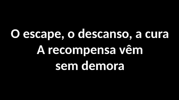- O escape, o descanso, a curaA recompensa vêmsem demora