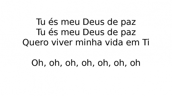 - Tu és meu Deus de pazTu és meu Deus de pazQuero viver minha vida em TiOh, oh, oh, oh, oh, oh, oh
