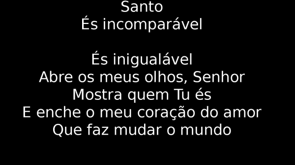 - SantoÉs incomparável És inigualávelAbre os meus olhos, SenhorMostra quem Tu ésE enche o meu coração do amorQue faz mudar o mundo