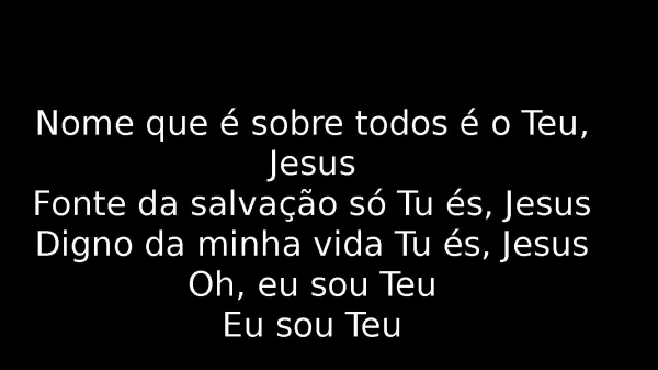 - Nome que é sobre todos é o Teu, JesusFonte da salvação só Tu és, JesusDigno da minha vida Tu és, JesusOh, eu sou TeuEu sou Teu