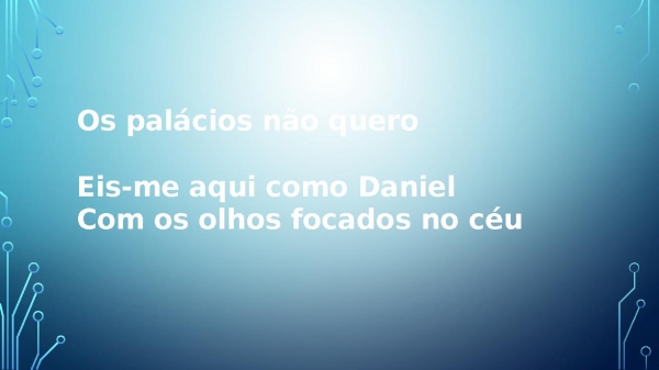 - Os palácios não queroEis-me aqui como Daniel Com os olhos focados no céu