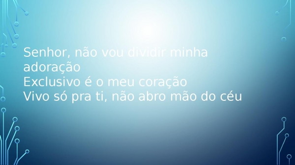 - Senhor, não vou dividir minha adoração Exclusivo é o meu coração Vivo só pra ti, não abro mão do céu