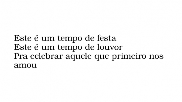 - Este é um tempo de festaEste é um tempo de louvorPra celebrar aquele que primeiro nos amou