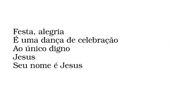 - Festa, alegriaÉ uma dança de celebraçãoAo único dignoJesusSeu nome é Jesus