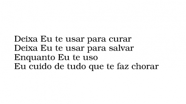 - Deixa Eu te usar para curarDeixa Eu te usar para salvarEnquanto Eu te usoEu cuido de tudo que te faz chorar
