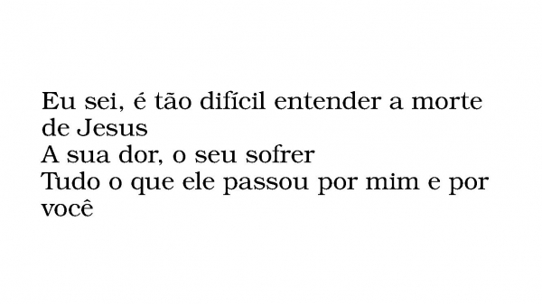 - Eu sei, é tão difícil entender a morte de JesusA sua dor, o seu sofrerTudo o que ele passou por mim e por você