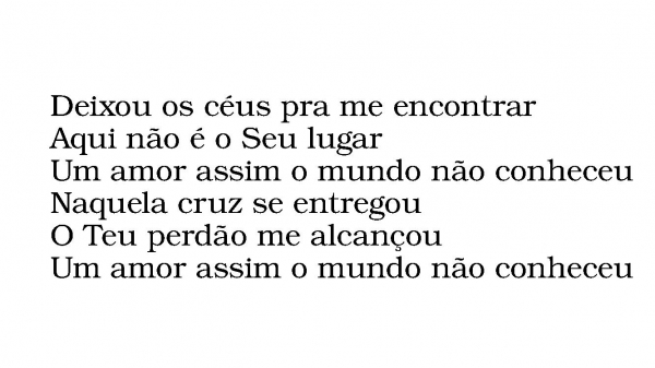 - Deixou os céus pra me encontrarAqui não é o Seu lugarUm amor assim o mundo não conheceuNaquela cruz se entregouO Teu perdão me alcançouUm amor assim o mundo não conheceu