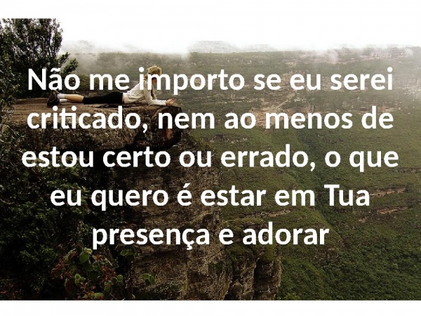 - Não me importo se eu serei criticado, nem ao menos de estou certo ou errado, o que eu quero é estar em Tua presença e adorar