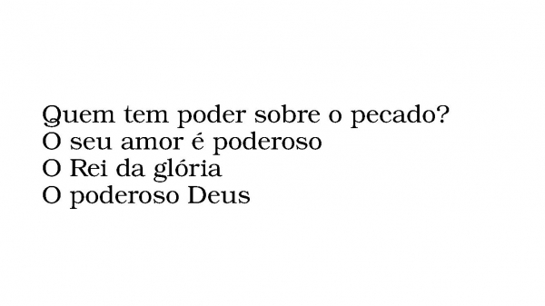 - Quem tem poder sobre o pecado?O seu amor é poderosoO Rei da glóriaO poderoso Deus