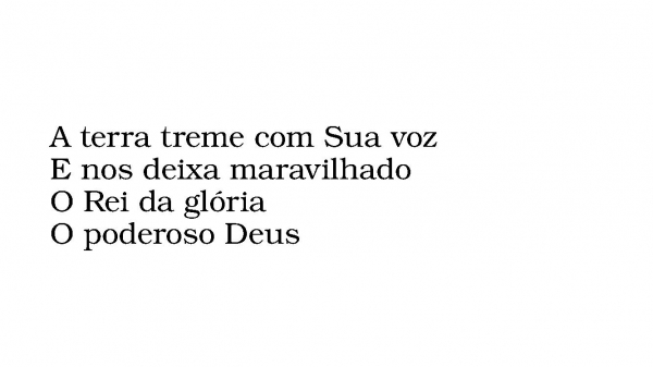 - A terra treme com Sua vozE nos deixa maravilhadoO Rei da glóriaO poderoso Deus