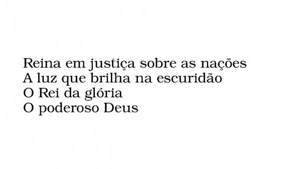 - Reina em justiça sobre as naçõesA luz que brilha na escuridãoO Rei da glóriaO poderoso Deus