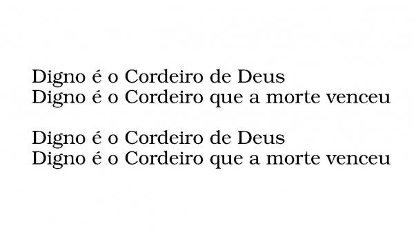 - Digno é o Cordeiro de DeusDigno é o Cordeiro que a morte venceuDigno é o Cordeiro de DeusDigno é o Cordeiro que a morte venceu