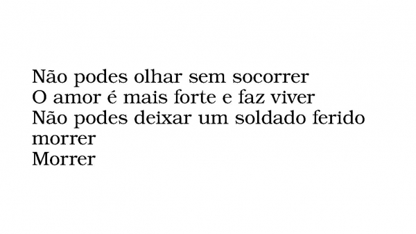 - Não podes olhar sem socorrerO amor é mais forte e faz viverNão podes deixar um soldado ferido morrerMorrer