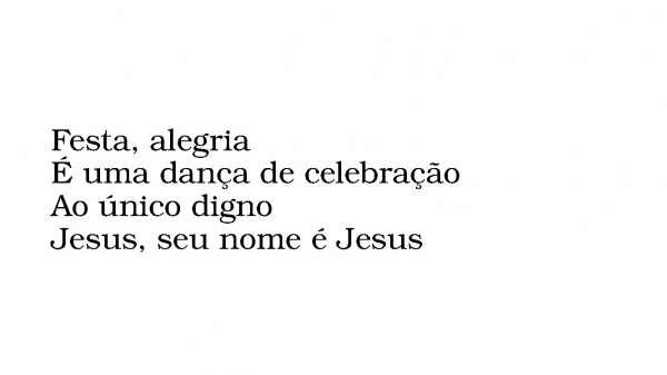 - Festa, alegriaÉ uma dança de celebraçãoAo único dignoJesus, seu nome é Jesus
