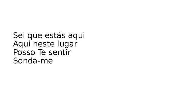 - Sei que estás aquiAqui neste lugarPosso Te sentirSonda-me