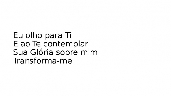 - Eu olho para TiE ao Te contemplarSua Glória sobre mimTransforma-me