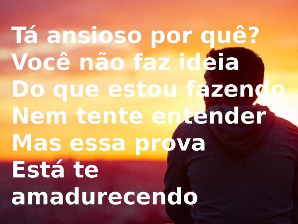 - Tá ansioso por quê?Você não faz ideiaDo que estou fazendoNem tente entenderMas essa provaEstá te amadurecendo