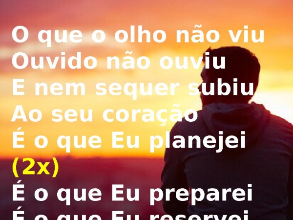 - O que o olho não viuOuvido não ouviuE nem sequer subiuAo seu coraçãoÉ o que Eu planejei (2x)É o que Eu prepareiÉ o que Eu reservei pra você