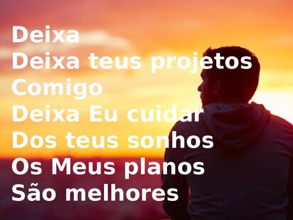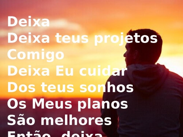 - DeixaDeixa teus projetos ComigoDeixa Eu cuidarDos teus sonhosOs Meus planosSão melhores