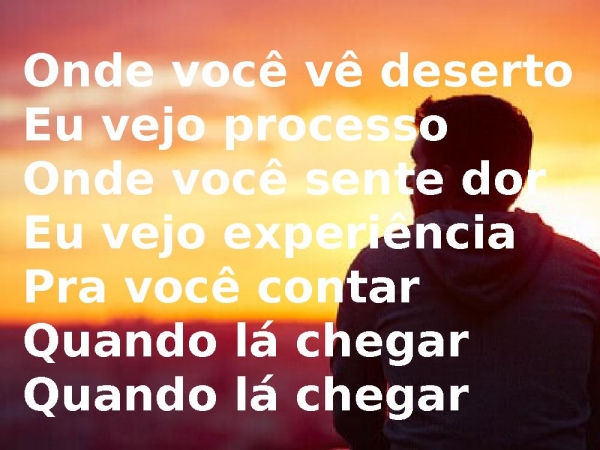 - Onde você vê desertoEu vejo processoOnde você sente dorEu vejo experiênciaPra você contarQuando lá chegarQuando lá chegar