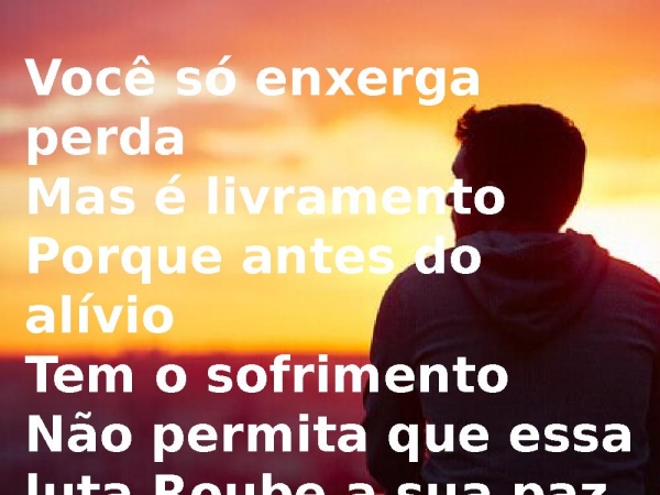 - Você só enxerga perdaMas é livramentoPorque antes do alívioTem o sofrimentoNão permita que essa luta Roube a sua pazMas deixa