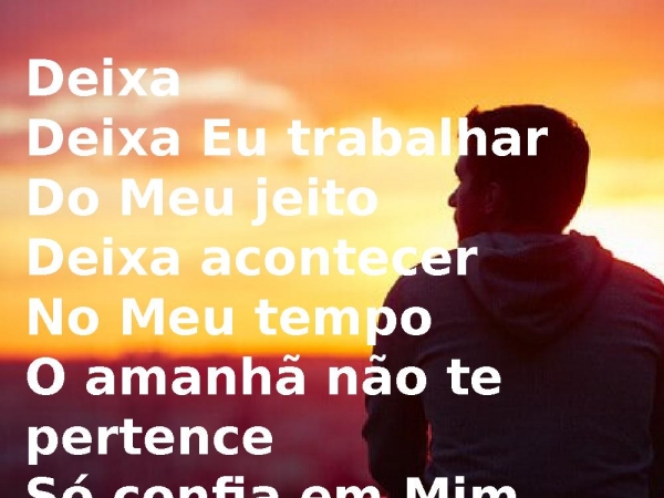 - DeixaDeixa Eu trabalharDo Meu jeitoDeixa acontecerNo Meu tempoO amanhã não te pertenceSó confia em Mim, oh...