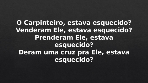 - O Carpinteiro, estava esquecido?Venderam Ele, estava esquecido?Prenderam Ele, estava esquecido?Deram uma cruz pra Ele, estava esquecido?
