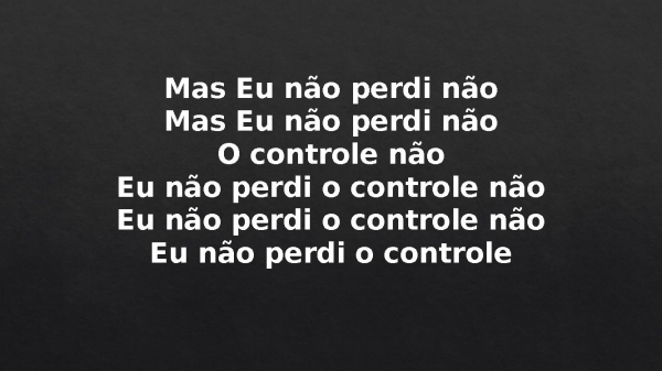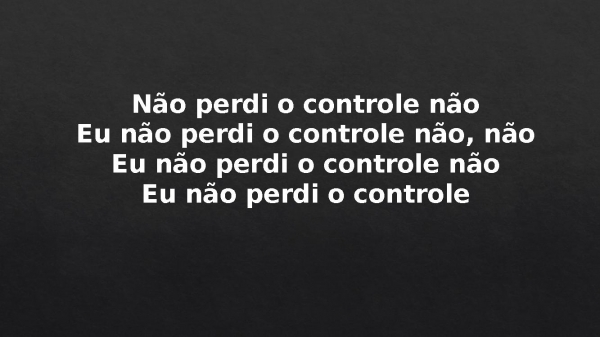 - Não perdi o controle nãoEu não perdi o controle não, nãoEu não perdi o controle nãoEu não perdi o controle