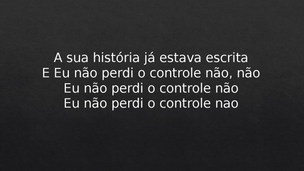 - A sua história já estava escritaE Eu não perdi o controle não, nãoEu não perdi o controle nãoEu não perdi o controle nao