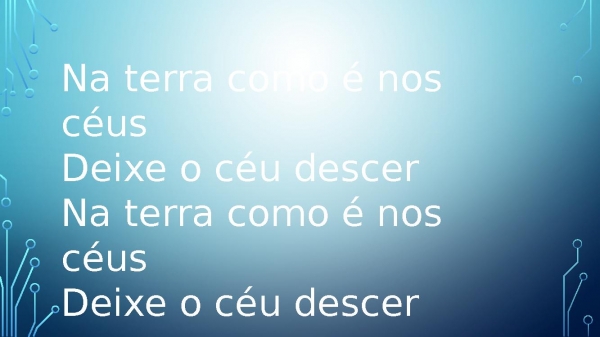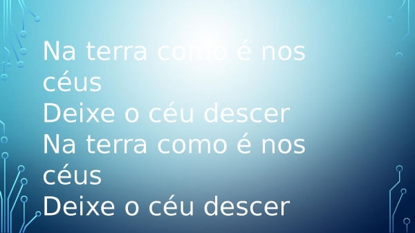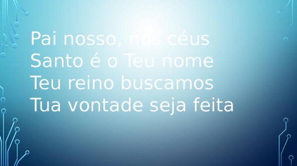 - Pai nosso, nos céusSanto é o Teu nomeTeu reino buscamosTua vontade seja feita