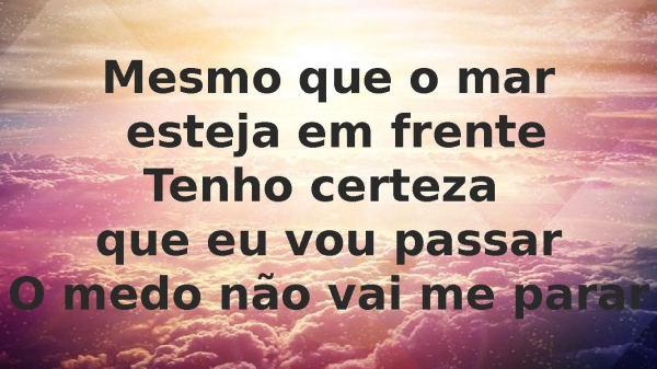 - Mesmo que o mar esteja em frenteTenho certeza que eu vou passarO medo não vai me parar